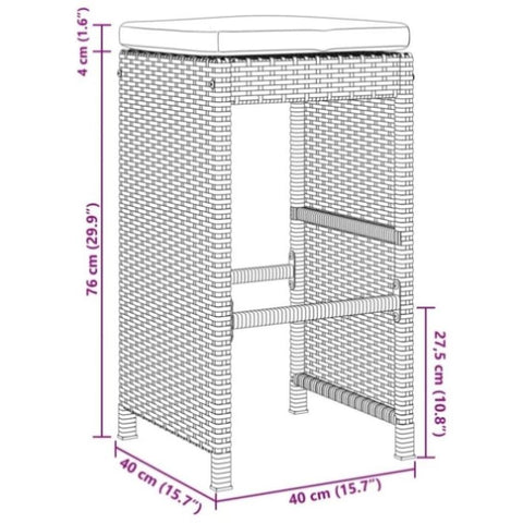 Relax and enjoy the outdoors on these comfortable garden bar stools! Durable material: PE rattan, also known as poly rattan, is a strong, low-maintenance synthetic material that looks like natural rattan. It's lightweight, easy to clean, and commonly used for outdoor furniture due to its durability and weather-resistant properties.Comfortable seat experience: This outdoor furniture, complete with thickly padded cushions, offers a comfortable seating experience.Removable and washable cover: These seat cushions feature removable covers for easy washing and maintenance. Robust and stable frame: The powder-coated steel frame ensures that the garden furniture is strong and stable for daily outdoor use. Good to know:To make sure your outdoor furniture stays beautiful, we recommend protecting it with a waterproof cover.