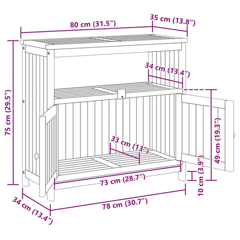 This wooden garden console table is designed to add a unique rustic style to your indoor and outdoor space. Durable material: Solid acacia wood is a beautiful natural material. Acacia wood is a tropical hardwood, which is dense, sturdy, and durable.Stable frame: The wooden frame of the console table ensures sturdiness and stability.Ample storage space: The outdoor table has 1 shelf and 1 compartment with doors, providing enough storage space for you to keep various daily essentials organised and within easy reach.Practical doors: Keep your essentials free from dust by hiding them behind the doors of the garden table. Warning:To prevent it being overturned, this product must be used with the provided wall attachment device. Good to know:To make assembly as easy as possible, each product is delivered with a manual. Note:To make sure your outdoor furniture stays beautiful, we recommend protecting it with a waterproof cover.
