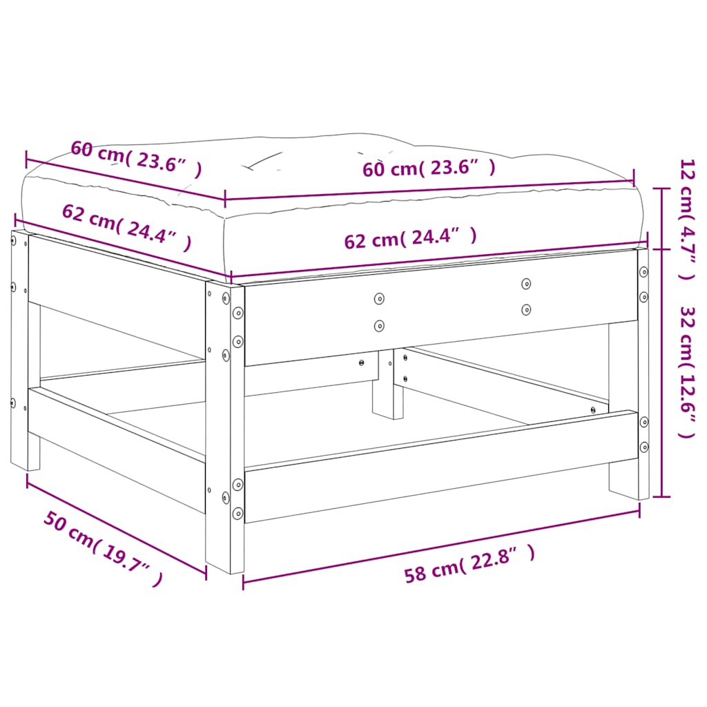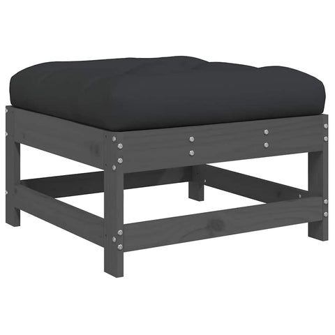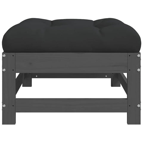 Garden Footstool with Cushion Grey Solid Wood Pine 825557