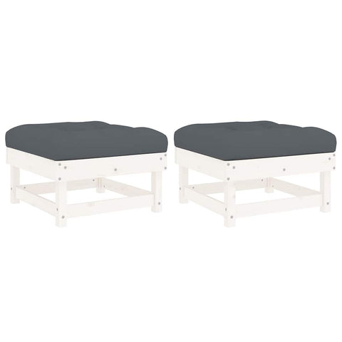Garden Footstools with Cushions 2pcs White Solid Wood Pine 825465