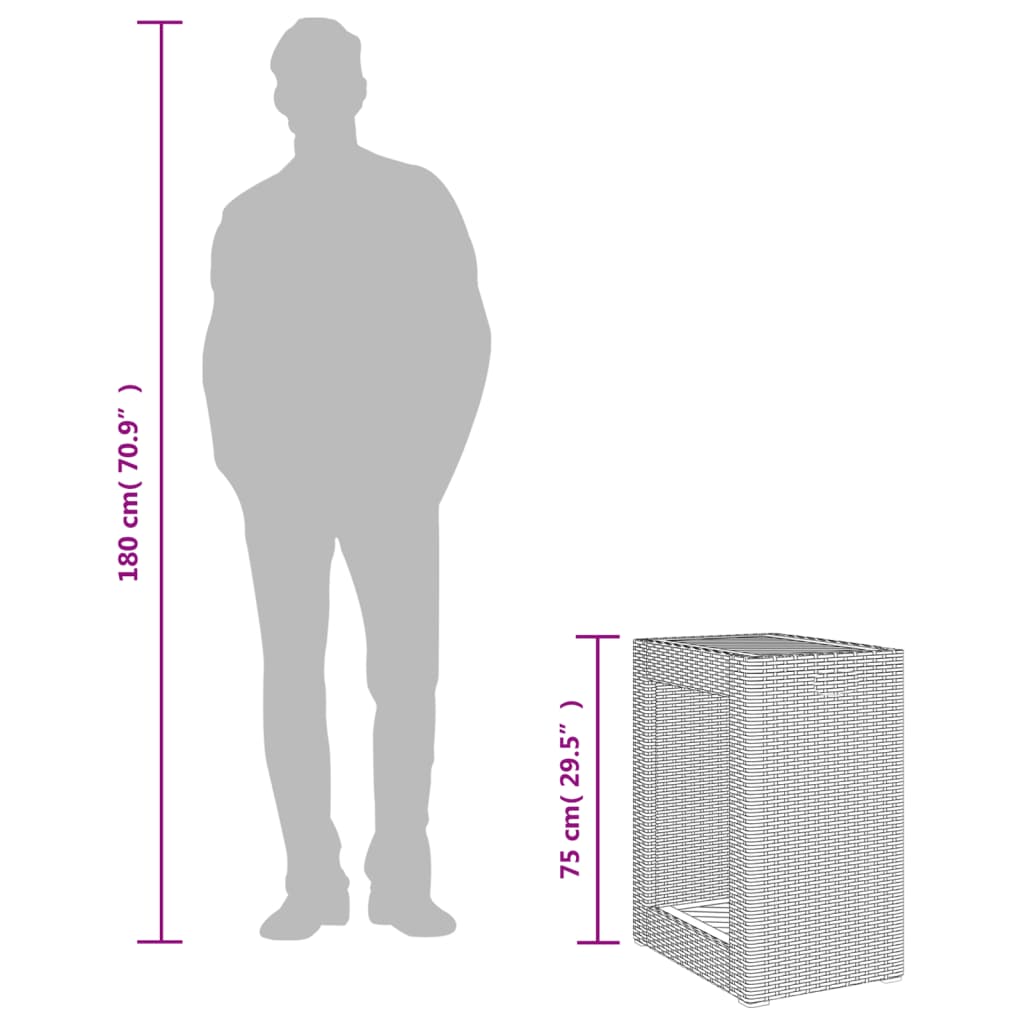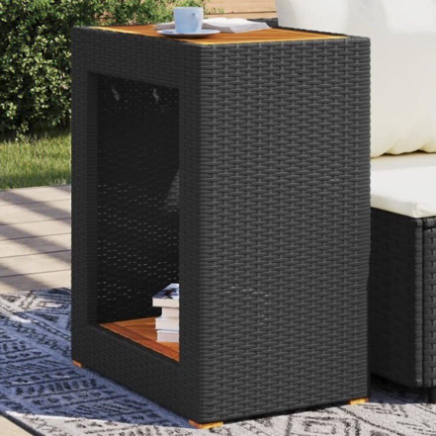 Gather around this versatile garden side table to enjoy a coffee or have a chat with your family and friends in the garden, backyard, or on the patio! Durable material: PE rattan, also known as poly rattan, is a strong, low-maintenance synthetic material that looks like natural rattan. It's lightweight, easy to clean, and commonly used for outdoor furniture due to its durability and weather-resistant properties.Stable and easy-to-clean tabletop: This garden table has an acacia wood top that is sturdy, durable, and easy to clean with a damp cloth.Robust and stable frame: The powder-coated steel frame ensures that the garden furniture is strong and stable for daily outdoor use. Good to know:To make sure your outdoor furniture stays beautiful, we recommend protecting it with a waterproof cover.