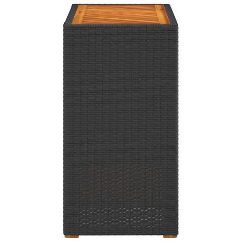 Garden Side Table with Wooden Top Black 60x40x75 cm Poly Rattan 366303