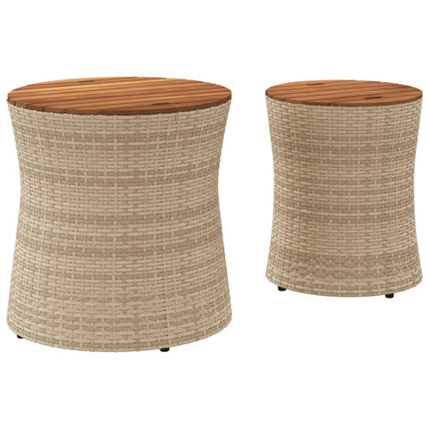 Garden Side Tables 2 pcs with Wooden Top Beige Poly Rattan 366290