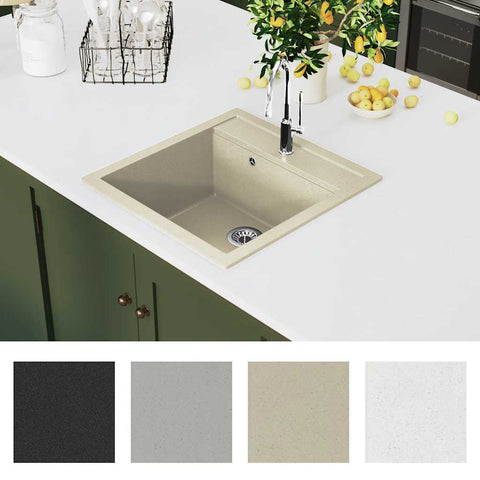 Our granite kitchen sink will be a both user-friendly and timeless addition to your kitchen decor. It features a single, extra-deep basin and a sleek design. The high-quality granite makes the sink exceedingly heat resistant, scratch & impact resistant, as well as easy to clean. A basket strainer is also included for easy debris removal. The sink is easy to assemble.Plug not included.
