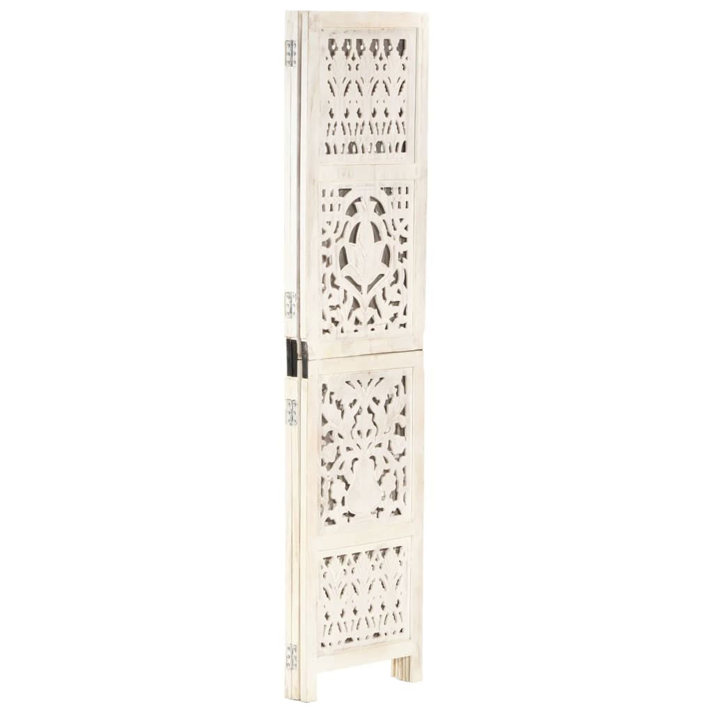 Hand carved 3-Panel Room Divider White 120x165 cm Solid Mango Wood 285330