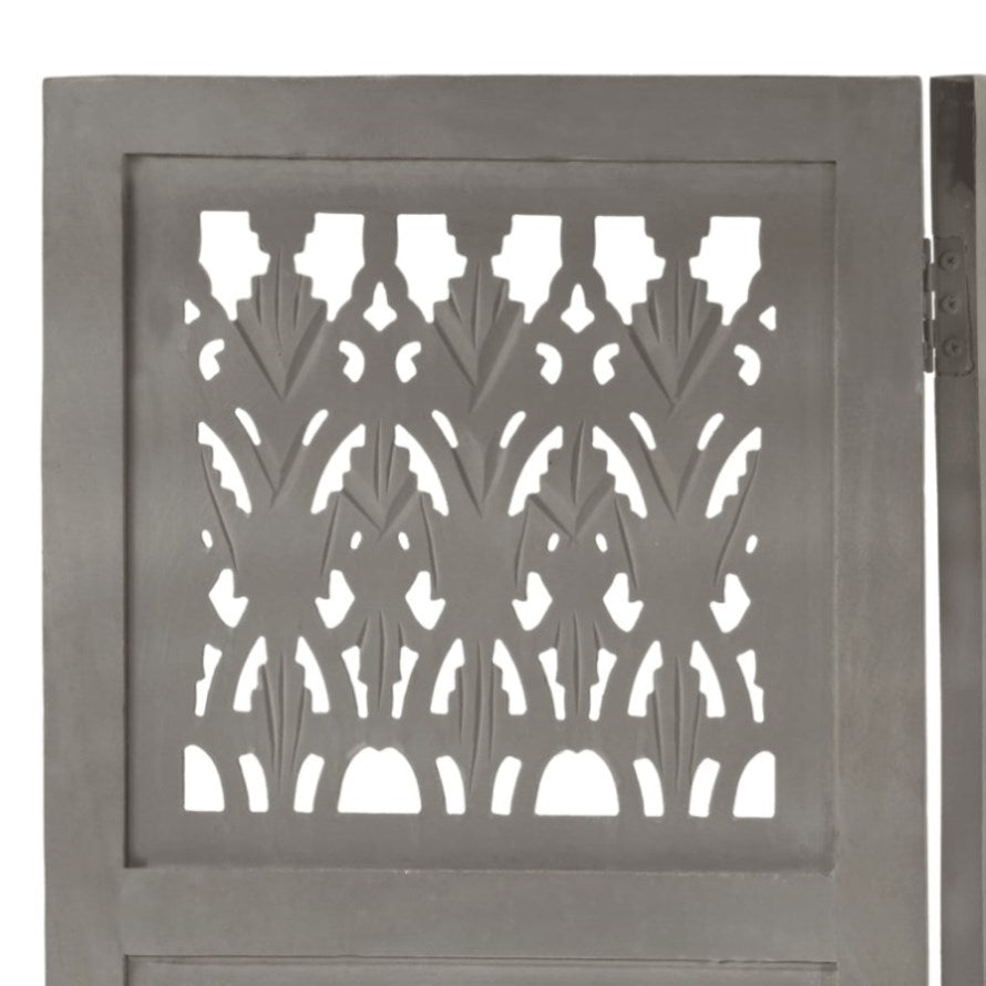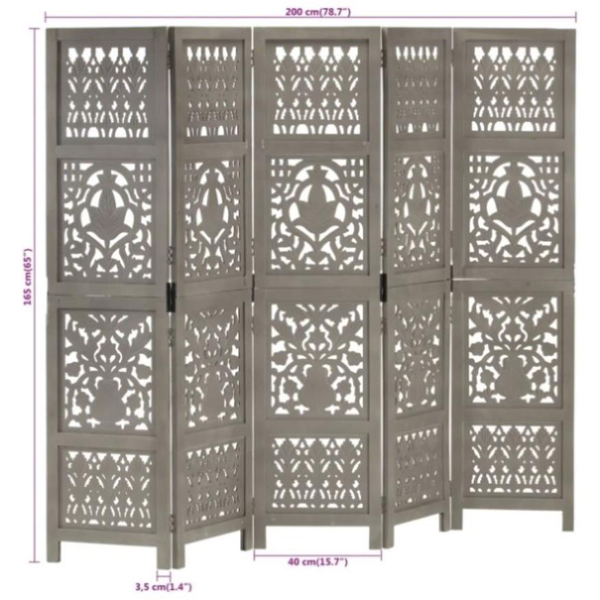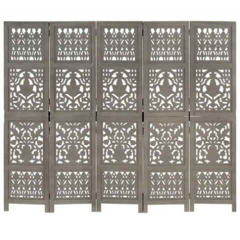 Hand Carved 5-Panel Room Divider Grey 200x165 cm Solid Mango Wood 285333