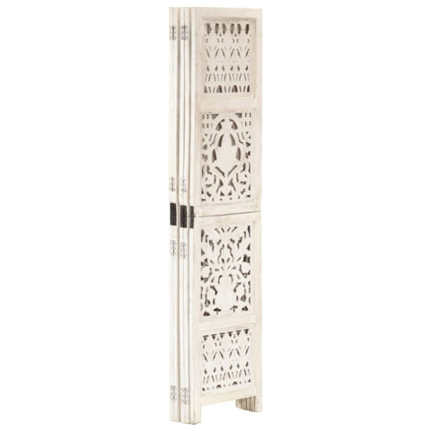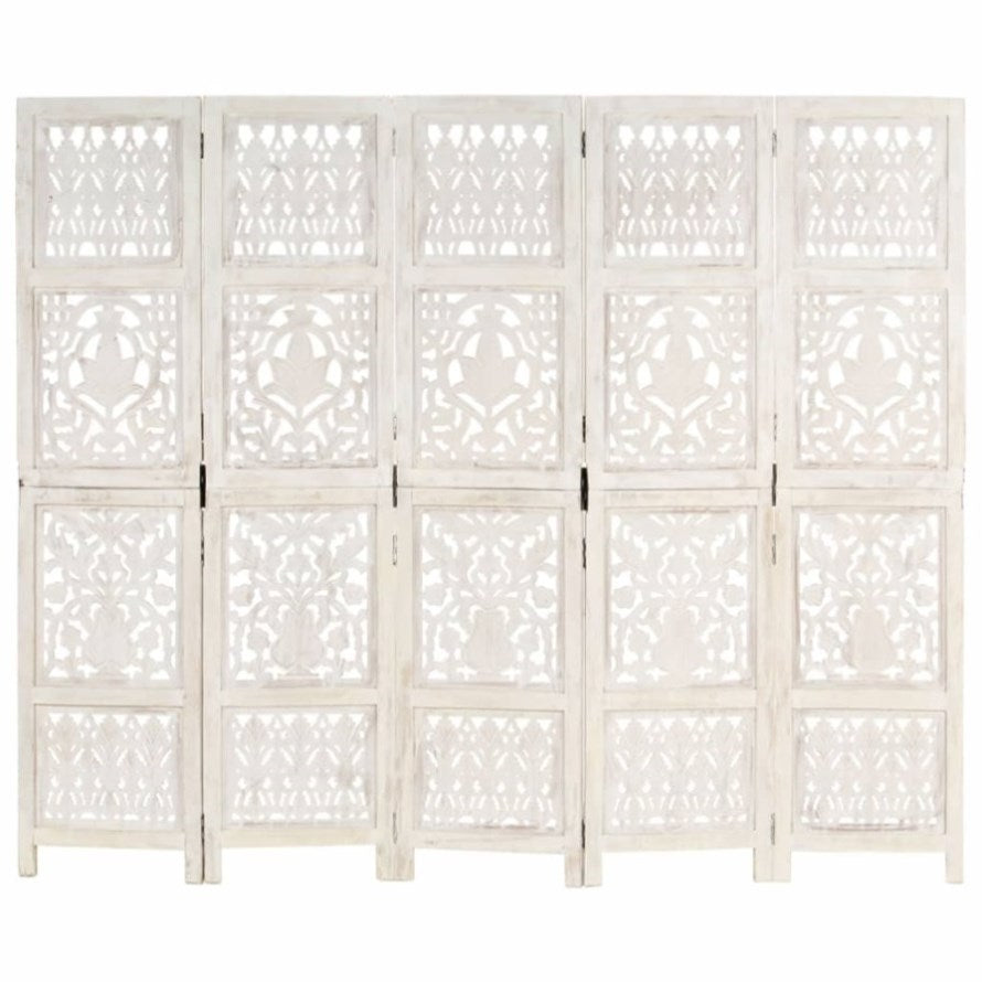 Hand carved 5-Panel Room Divider White 200x165 cm Solid Mango Wood 285331