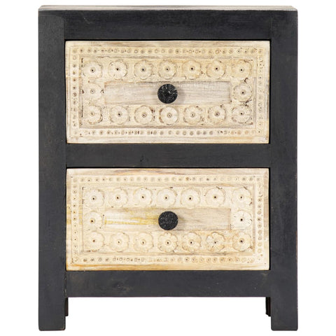 Bring the luxury of hand-carved pattern to your interior with our elegant wooden bedside cabinet! Made of solid mango wood, the nightstand has been given a beautiful finish by polishing, painting and lacquering, making it exude a refine look. The two drawers with hand craved pattern adds to the bedside cabinet's beauty while providing ample storage space for keeping your smaller items organised and within reach. Additionally, the bed drawer cabinet is easy to assemble and clean with a damp cloth. Upgrade your interior to the next level with our elegant nightstand!