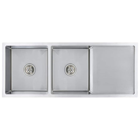 Enjoy the advantage of our high-end sink with clean contemporary designs. The bowls in silky smooth satin finish will ooze class and sophistication, which will fit any kitchen decor! Combing the best in function and design, this double bowl sink is crafted of high-graded handmade stainless steel in anti-condensation paint, mould proof, lead free and corrosion resistant. It is sound proofing with the sound-reduction pads. The drainboard will come in very handy not only when washing dishes by hand but also as an extra place for cutting vegetables. Additionally, the bowls with a unique X-flume design facilitate quick flow, preventing standing water in the bottom of the basin. The kitchen sink is easy to assemble. The handmade stainless steel can be fitted as undermount, flush mount and drop in and you can have it in any way you prefer.