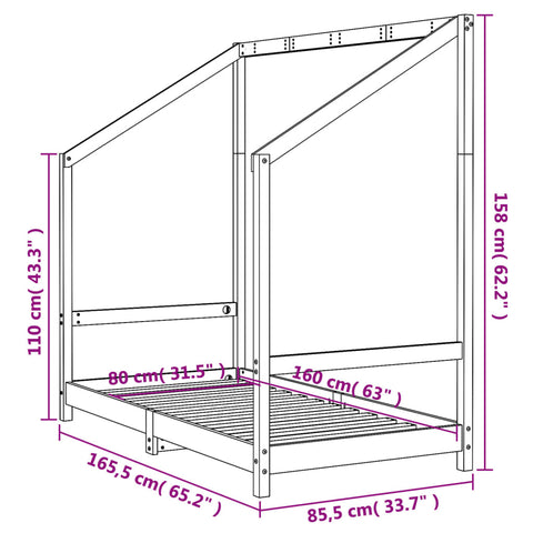 Kids Bed Frame 80x160 cm Solid Wood Pine 835709