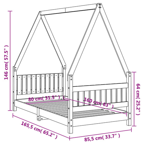 Kids Bed Frame White 80x160 cm Solid Wood Pine 834505