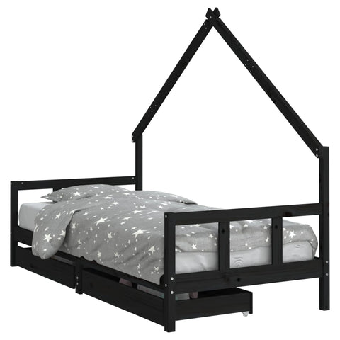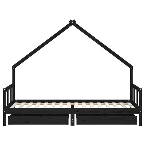 Kids Bed Frame with Drawers Black 90x200 cm Solid Wood Pine 834554