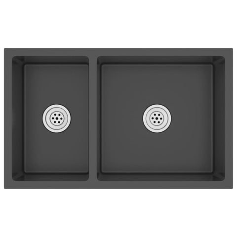 This kitchen sink is a timeless addition to your existing kitchen decor. It features extra-deep basins and a sleek design. The sink is made of stainless steel, making it scratch and impact resistant and easy to clean. A strainer set is also included for easy debris removal. The drainer hole is 90 mm in diameter. This kitchen sink is suitable for above and under mounting.