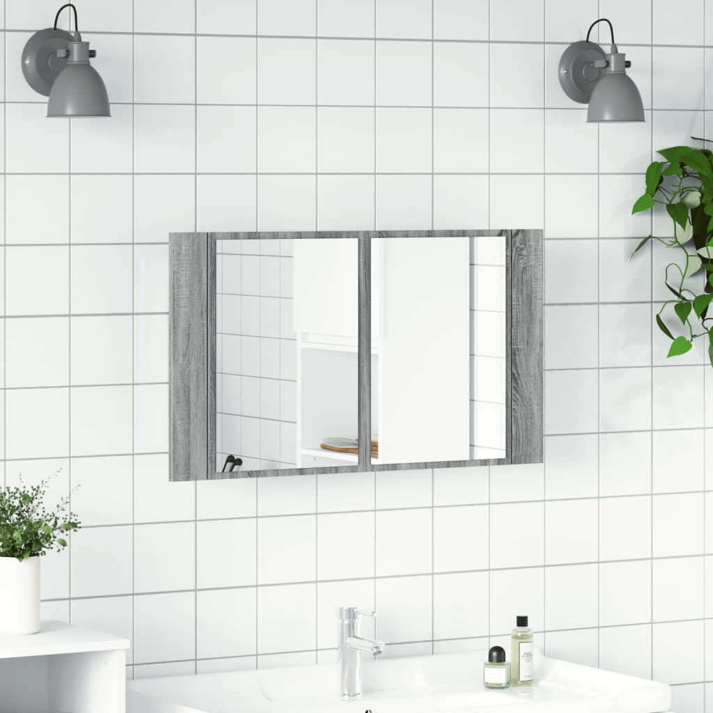 LED Bathroom Mirror Cabinet Grey Sonoma 80x12x45 cm Acrylic 834952