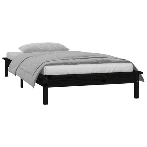 LED Bed Frame without Mattress Black 75x190 cm Small Single Solid Wood 820635