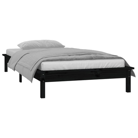 LED Bed Frame without Mattress Black 90x190 cm Single Single Solid Wood 820640