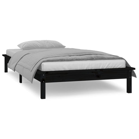 LED Bed Frame without Mattress Black 90x200 cm Solid Wood 820595