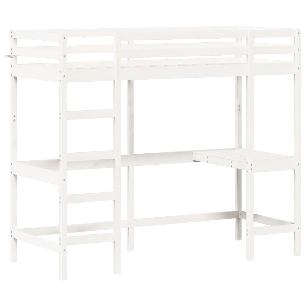 This wooden loft bed is elegant and functional, making it a perfect addition to any room with limited space. Solid pine wood: Solid pine wood is a beautiful natural material. Pine wood has a straight grain, and the knots give the material its signature, rustic look.Safe design: The loft bed with desk is designed with safety in mind. It features guardrails to keep the user from rolling out while sleeping.Spacious desktop: The desktop is large enough for a laptop and books, creating a comfortable study space for your kids.Plywood slats: The plywood slats provide good weight distribution, ensuring that the mattress stays in place with every twist and turn of your body during sleep. Good to know:Mattresses are not included with this bed. We do offer a various selection of mattresses. You can check our shop for matching mattresses. Warning:To prevent it from tipping over, this product must be used with the provided wall attachment device.