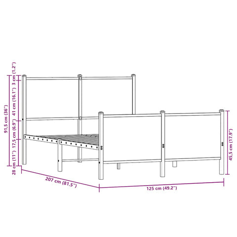 Metal Bed Frame without Mattress Brown Oak 120x200 cm 4007781