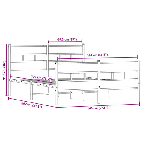 Metal Bed Frame without Mattress Smoked Oak 140x200 cm 4017072