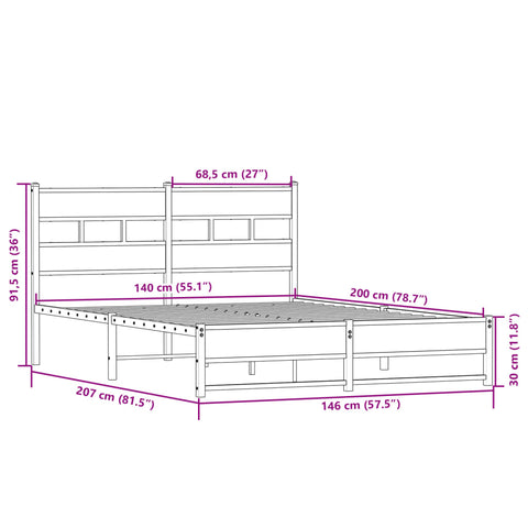 Metal Bed Frame without Mattress Sonoma Oak 140x200 cm 4017273