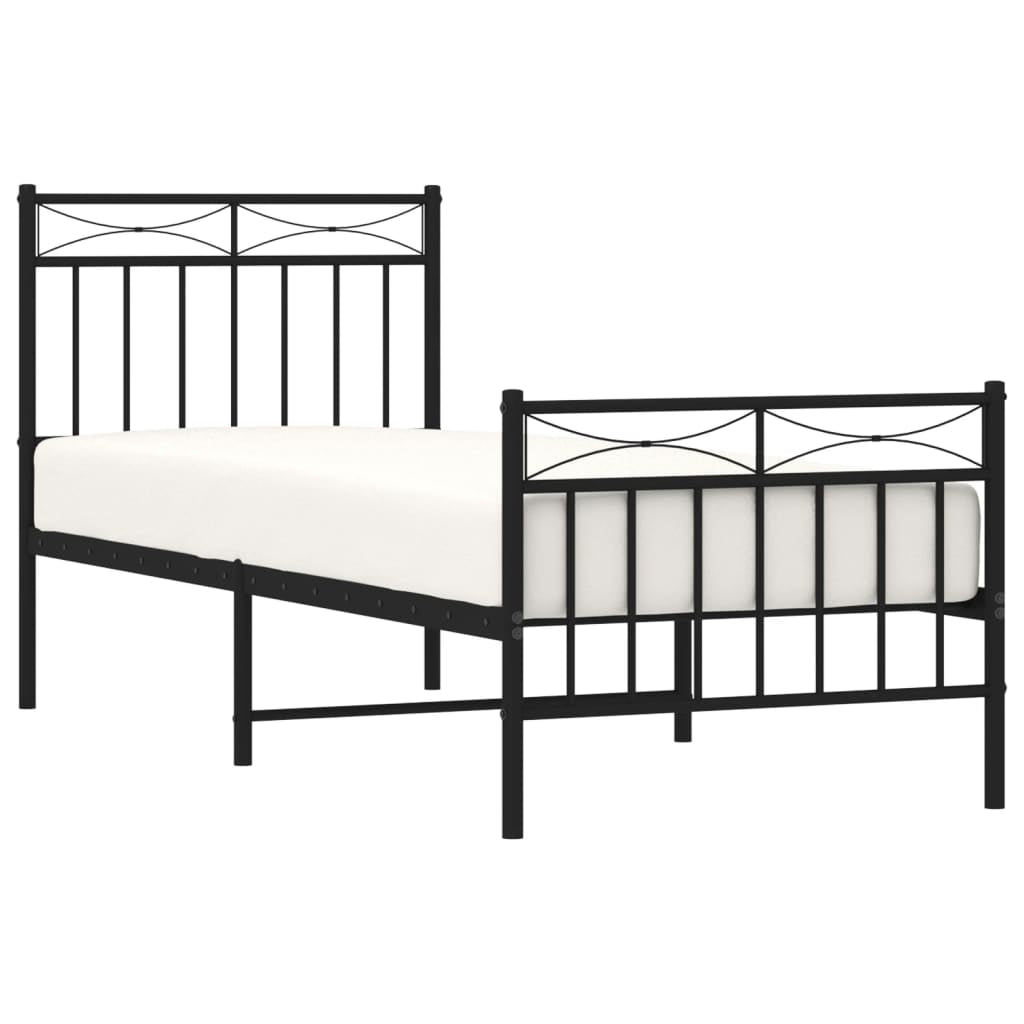 Metal Bed Frame without Mattress with Footboard Black 75x190cm 373699