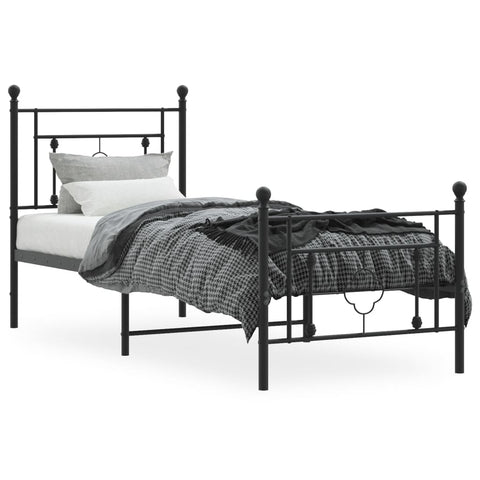 Metal Bed Frame without Mattress with Footboard Black 75x190cm 374347