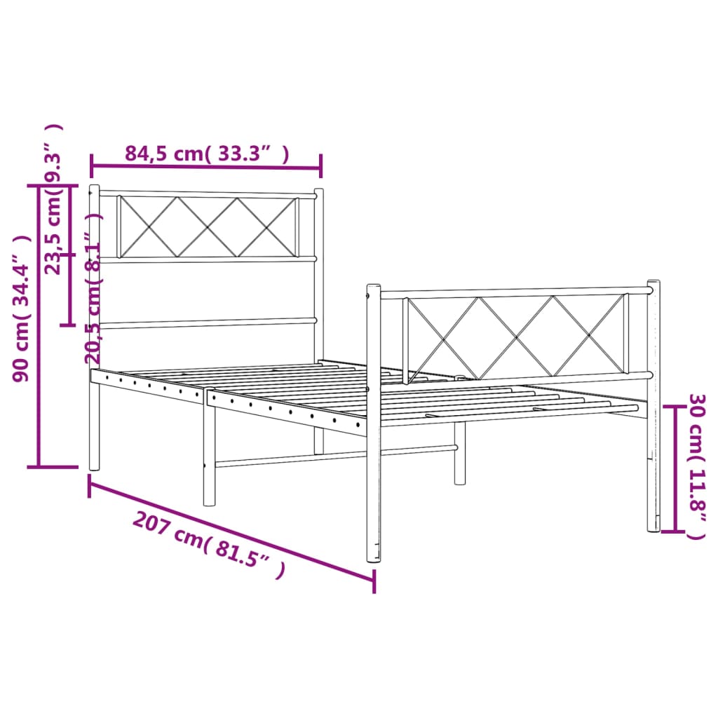 Metal Bed Frame without Mattress with Footboard Black 80x200cm 372286