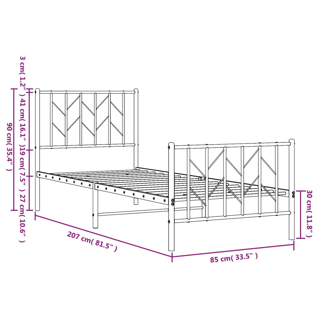 Metal Bed Frame without Mattress with Footboard Black 80x200cm 374446