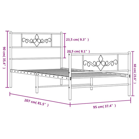 Metal Bed Frame without Mattress with Footboard Black 90x200cm 355278