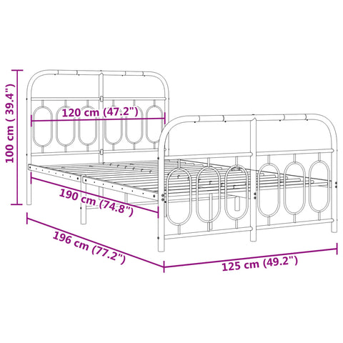 Metal Bed Frame without Mattress with Footboard White 120x190cm 377181