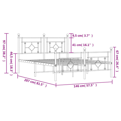 Metal Bed Frame without Mattress with Footboard White 140x200cm 374407