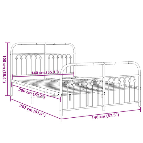 Metal Bed Frame without Mattress with Footboard White 140x200cm 376668