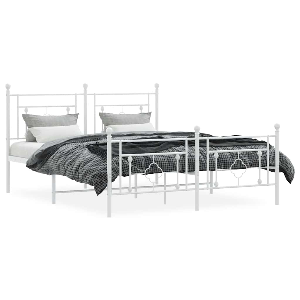 Metal Bed Frame without Mattress with Footboard White 150x200cm 374408