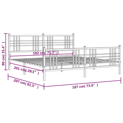 Metal Bed Frame without Mattress with Footboard White 180x200cm 376395
