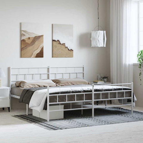 Metal Bed Frame without Mattress with Footboard White 193x203cm 355732