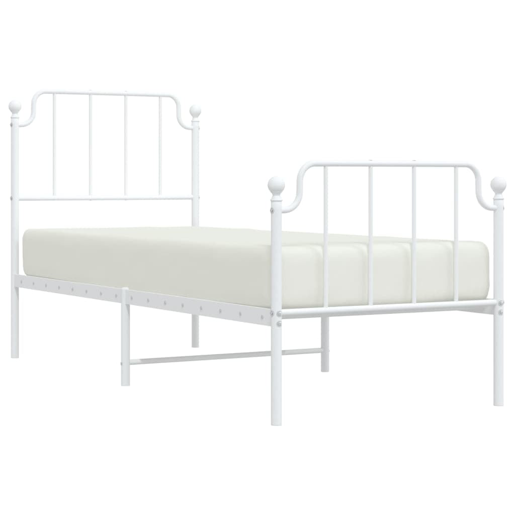 Metal Bed Frame without Mattress with Footboard White 75x190cm 373944