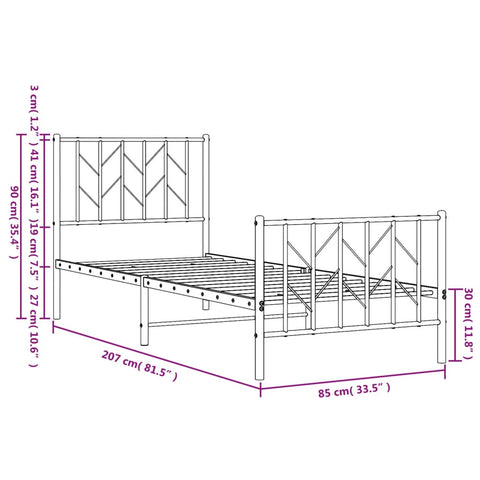 Metal Bed Frame without Mattress with Footboard White 80x200cm 374495