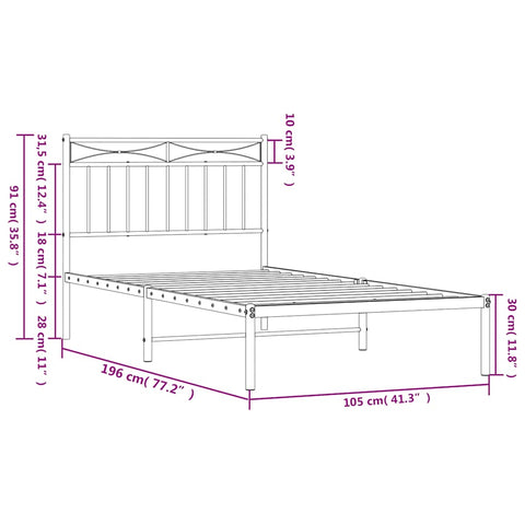 Metal Bed Frame without Mattress with Headboard Black 100x190cm 373685