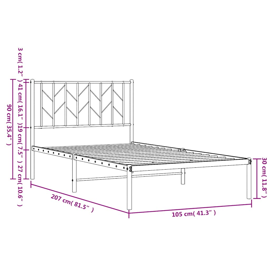 Metal Bed Frame without Mattress with Headboard Black 100x200cm 374432