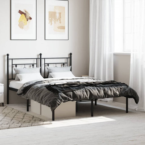 Metal Bed Frame without Mattress with Headboard Black 140x190cm 374339