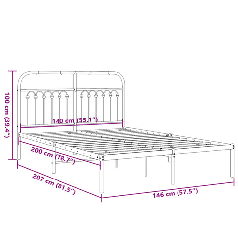 Metal Bed Frame without Mattress with Headboard Black 140x200cm 376601