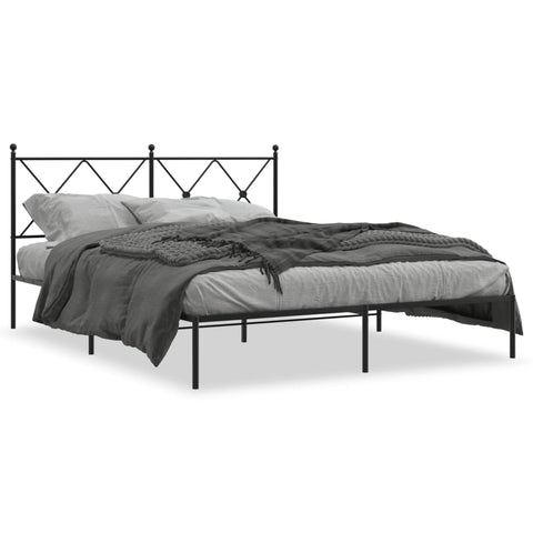 Metal Bed Frame without Mattress with Headboard Black 150x200cm 376504