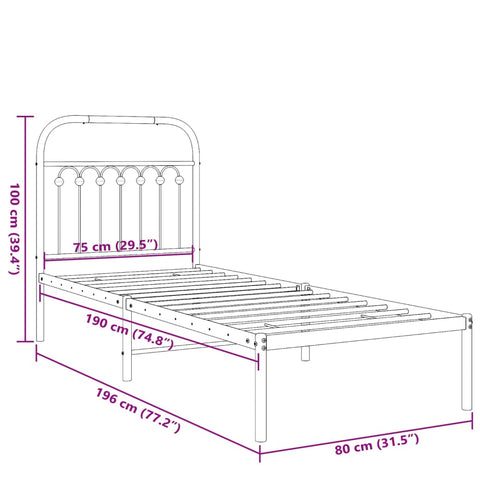 Metal Bed Frame without Mattress with Headboard Black 75x190cm 376590