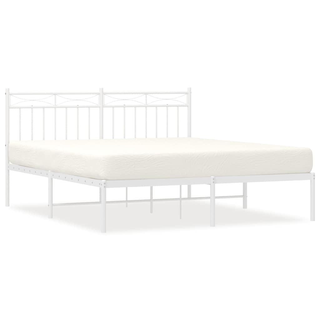 Metal Bed Frame without Mattress with Headboard White 150x200cm 373742