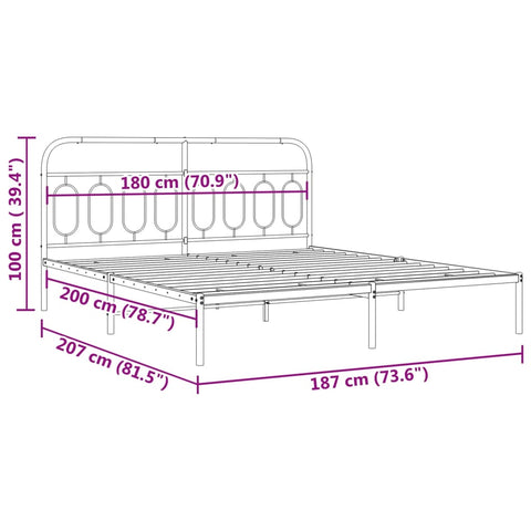 Metal Bed Frame without Mattress with Headboard White 180x200cm 377170