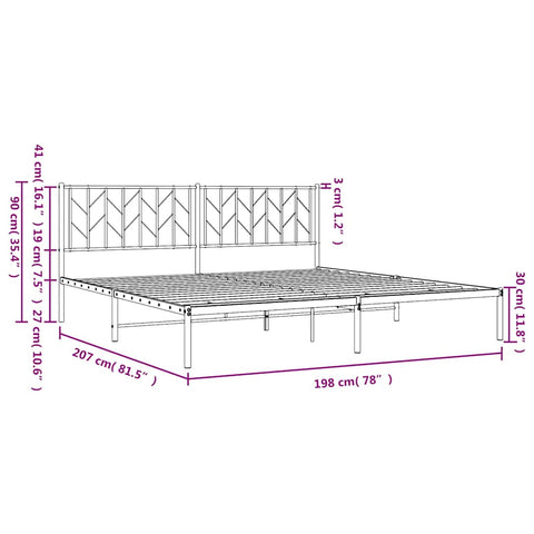 Metal Bed Frame without Mattress with Headboard White 193x203cm 374492