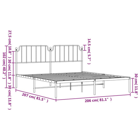 Metal Bed Frame without Mattress with Headboard White 200x200cm 373943