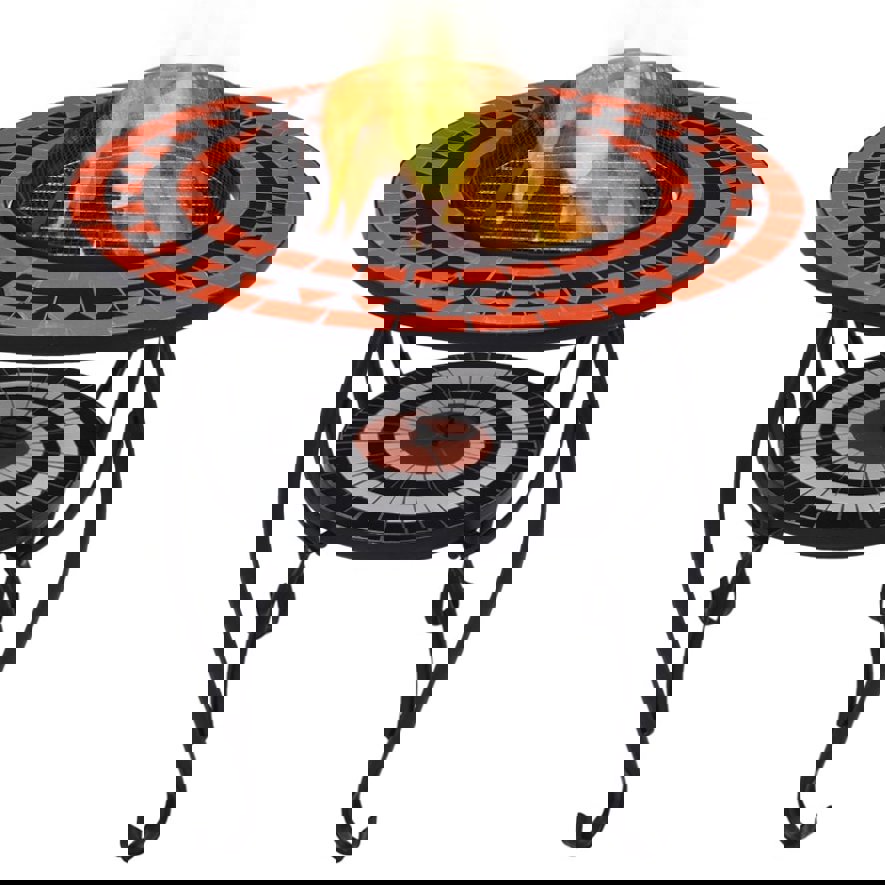 Mosaic Fire Pit Table Terracotta and White 68 cm Ceramic 46726