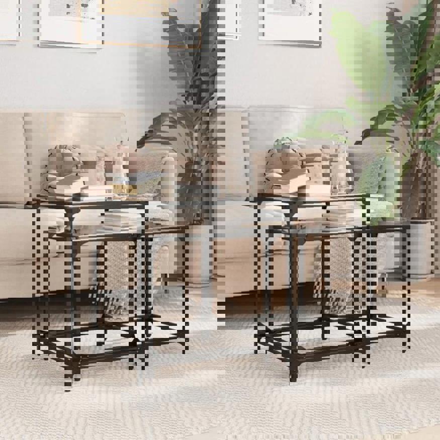 Nesting Coffee Tables 2 pcs with Black Glass Top Steel 845985